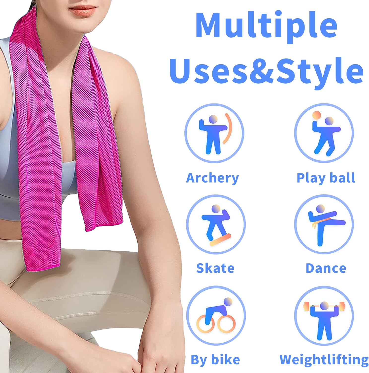 4 Pack Cooling Towel (40"x12"), Soft Breathable Chilly Towel, Ice Towel, Microfiber Towel for Yoga, Sport, Running, Workout,Gym, Camping, Fitness, Workout & More Activities